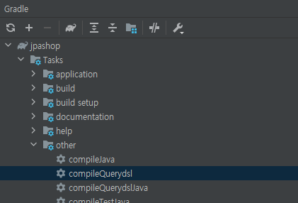 2. 우측 Gradle탭에서 Tasks/other/compileQuerydsl 실행(Run)